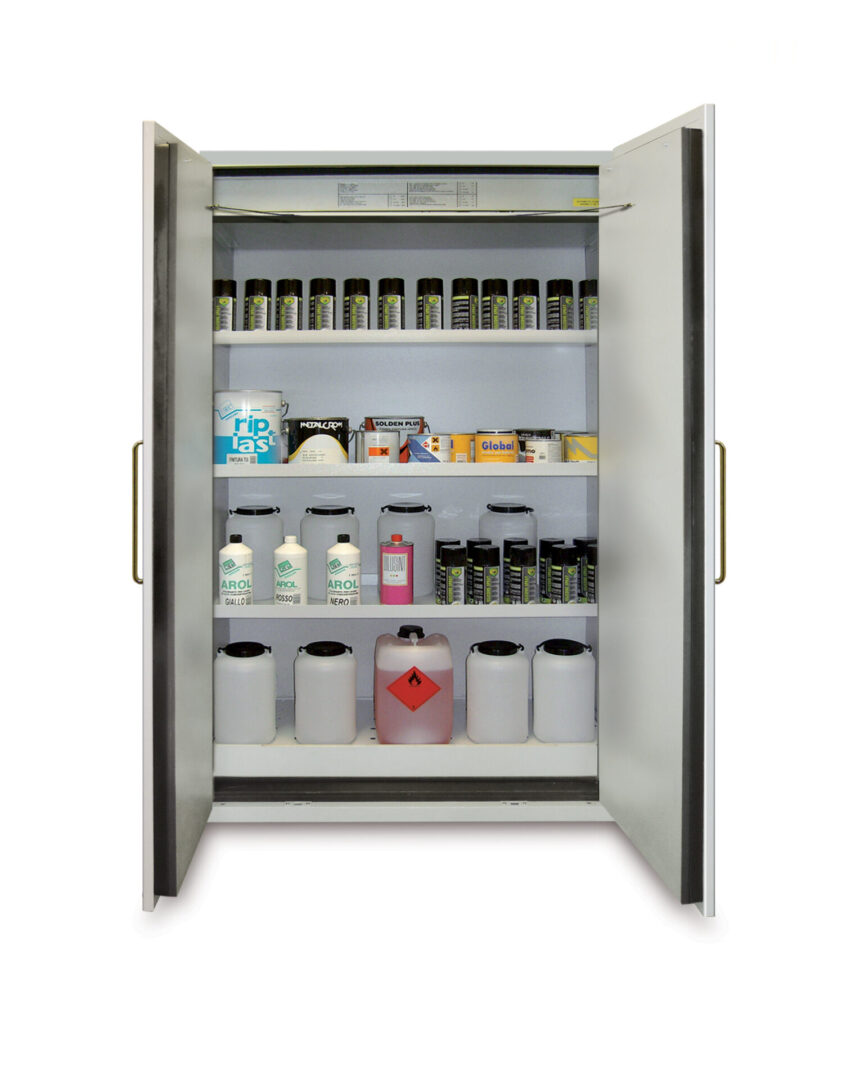 Veiligheidskasten voor de opslag van ontvlambare producten.